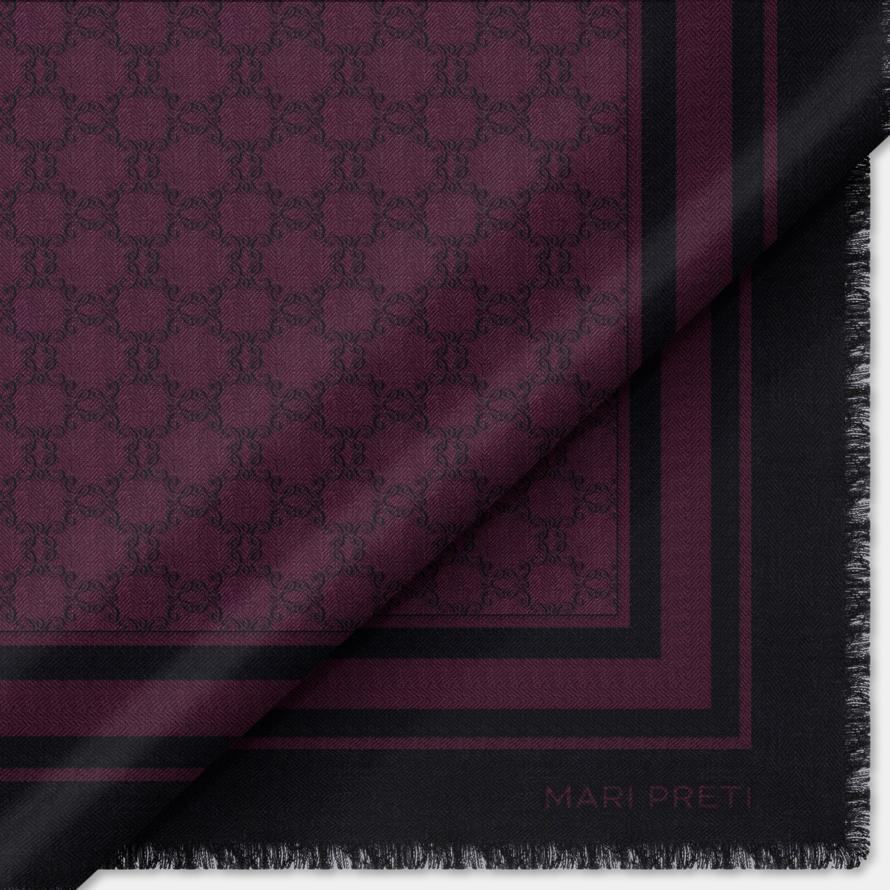 Burgundowa chusta wełniano-jedwabna MONOGRAM-M