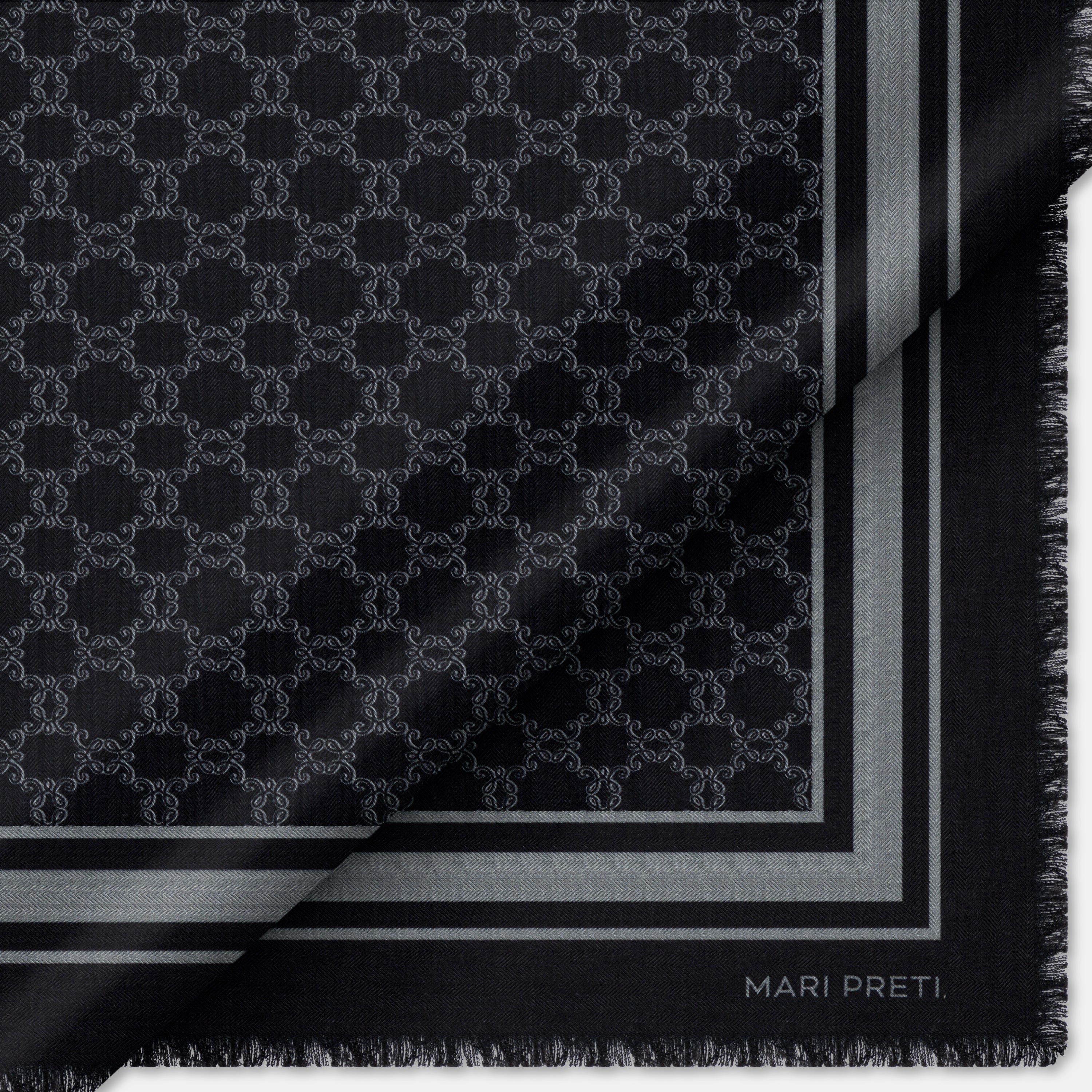 Czarna chusta wełniano-jedwabna MONOGRAM-M