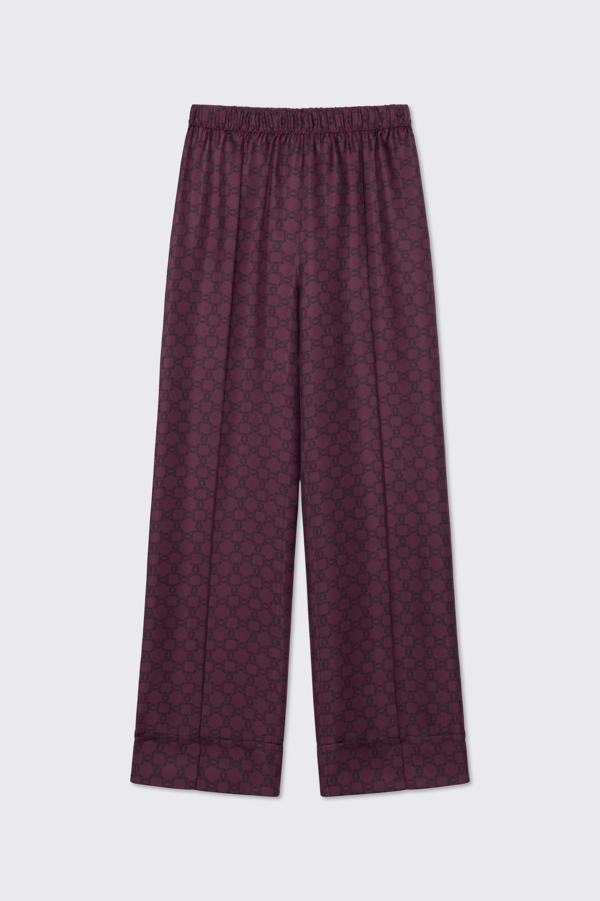 Wiśniowe jedwabne spodnie z mankietami MONOGRAM-M